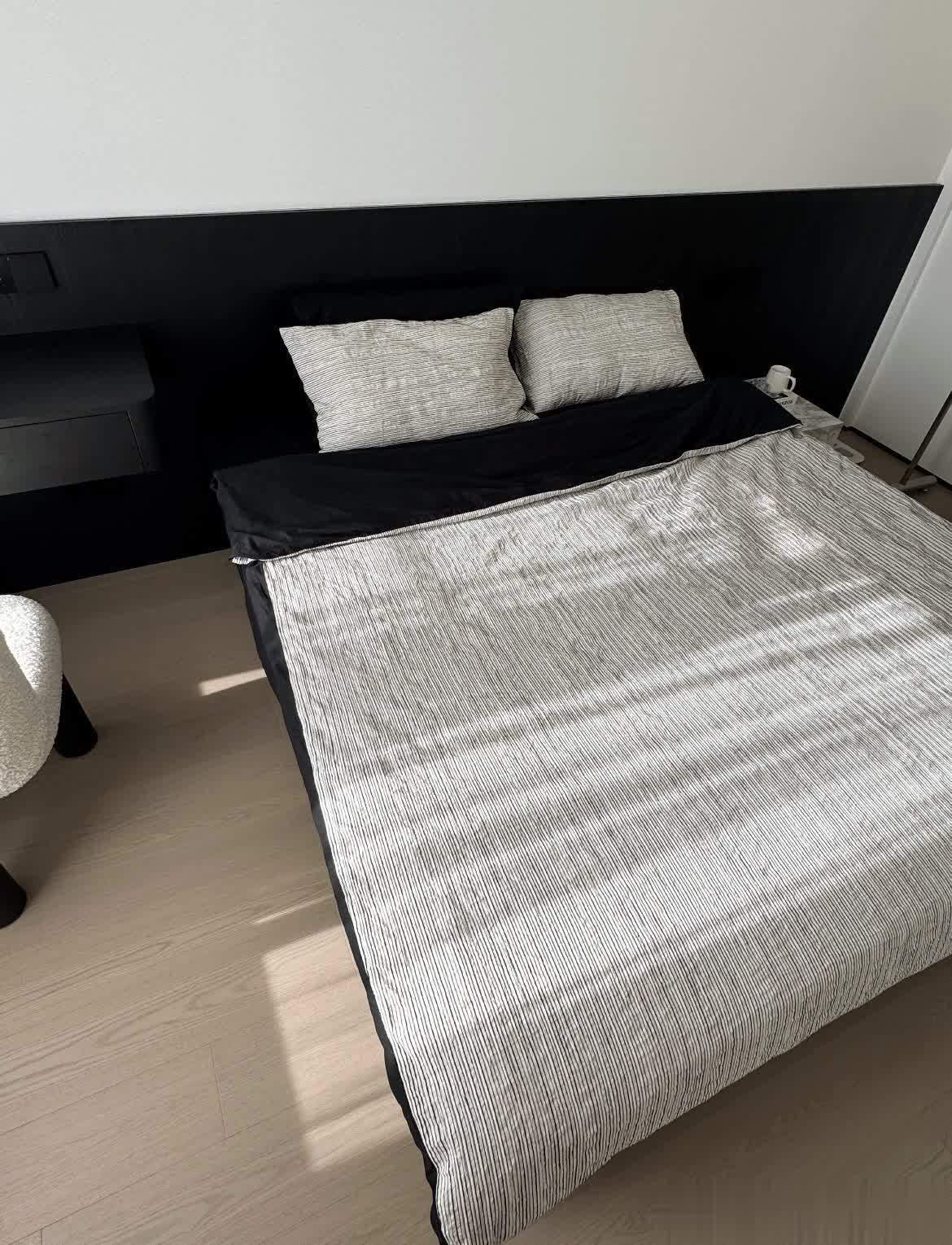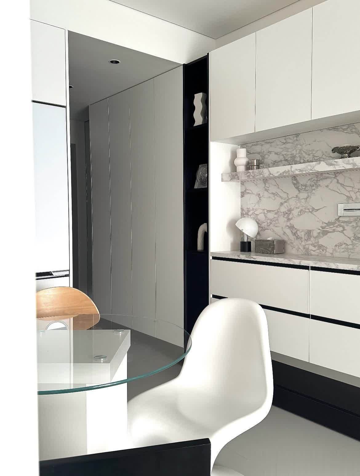 买房时就定下做黑白极简⬛,喜欢极简的留白感,米黄洞石隔断和灯带,带了暖意的线条设计,瞬间提升了空间高级感。