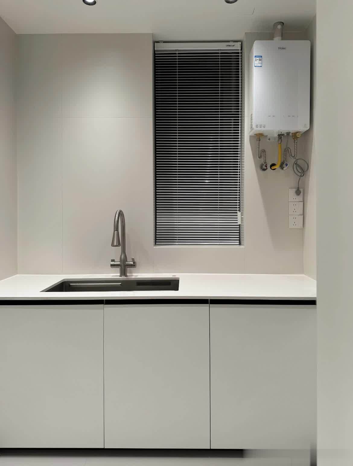 厨房以白色为主,白色能反射光线,使厨房显得更明亮、宽敞,尤其适合小户型或采光不足的空间,营造开阔的视觉效果。