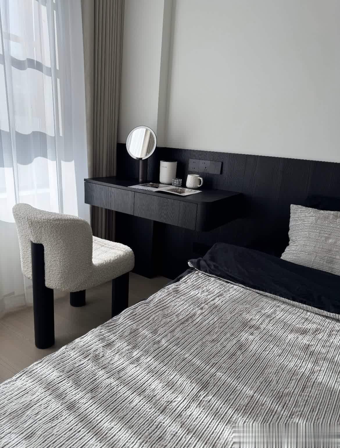 将梳妆功能集成到床头区域,避免了独立梳妆台占用额外地面面积,对于小户型卧室(如15㎡以内)能释放活动空间,使布局更紧凑;晨起或睡前可直接在床边完成化妆、护肤等流程,无需走动,节省时间;桌面常用于放置手机、书籍等物品,增强日常便利性。